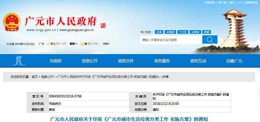四川省廣元市印發(fā)了《廣元市城市生活垃圾分類工作實施方案》。強制分類單位包括黨政機關(guān),以及學(xué)校、科研、文化、廣播電視等事業(yè)單位,協(xié)會、學(xué)會、聯(lián)合會等社團組織,車站、機場、碼頭、體育場館、演出場館等公共場所管理單位等公共機構(gòu);賓館、飯店、購物中心、超市、專業(yè)市場、農(nóng)貿(mào)市場、農(nóng)產(chǎn)品批發(fā)市場、商鋪、商用寫字...