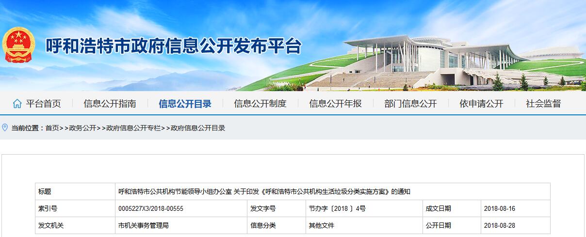 呼和浩特市印發(fā)了《呼和浩特市公共機構(gòu)生活垃圾分類實施方案》,詳情如下:呼和浩特市公共機構(gòu)節(jié)能領(lǐng)導(dǎo)小組辦公室關(guān)于印發(fā)《呼和浩特市公共機構(gòu)生活垃圾分類實施方案》的通知市各部委辦局,各人民團體、事業(yè)單位:為深入貫徹習近平總書記關(guān)于普遍推行垃圾分類制度的重要講話精神,根據(jù)國家、自治區(qū)、市政府關(guān)于實施生活垃圾...