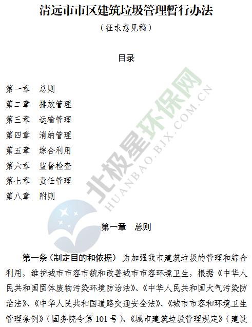 廣東省清遠市制定了《清遠市市區(qū)建筑垃圾管理暫行辦法》(征求意見稿)。隨著經(jīng)濟的快速發(fā)展、城市化進程的加快以及我市城市建設(shè)工作的全面推進,建筑垃圾產(chǎn)生量逐年增長,建筑垃圾處置需求不斷增加,管理工作難度日益加大,各類矛盾較為突出,特別是施工工地建筑渣土作業(yè)中產(chǎn)生的揚塵污染,建筑垃圾運輸中產(chǎn)生的道路污染、...