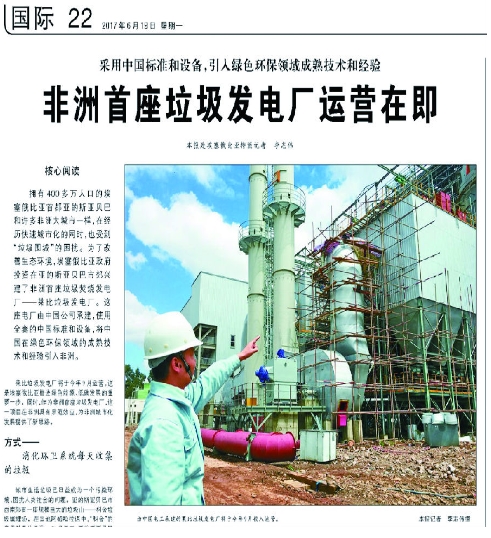 2017年6月19日,人民日報國際版一篇名為“非洲首座垃圾發(fā)電廠運營在即”的專題報道吸引了許多中設(shè)人的目光。照片中,藍天白云下,一座現(xiàn)代化的電廠拔地而起。與中設(shè)集團眾多成功的項目相比,這樣一座小規(guī)模的電廠再普通不過,但想不到的是,這座電廠是在一座像丘陵一樣的垃圾山旁,歷經(jīng)4年時間“熏”出來的——這國...