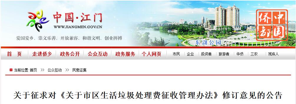 日前, 廣東江門市住建局發(fā)布了關(guān)于征求對《關(guān)于市區(qū)生活垃圾處理費征收管理辦法》修訂意見的公告,詳情如下:江門市住房和城鄉(xiāng)建設(shè)局、江門市發(fā)展和改革局在2015年12月聯(lián)合印發(fā)的《市區(qū)生活垃圾處理費征收管理辦法》(江建【2015】384)(以下簡稱《管理辦法》),有效期臨近屆滿。根據(jù)《江門市行政機關(guān)規(guī)范...