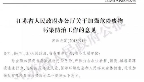 江蘇省人民政府辦公廳于近日發(fā)布了“關(guān)于加強危險廢物污染防治工作的意見”,文件明確表示,對年產(chǎn)危險廢物量500噸以上且當年均未落實處置去向,以及累計貯存2000噸以上的化工企業(yè),督促企業(yè)限期整改,未按要求完成整改的,政府將依法依規(guī)予以處理;危險廢物年產(chǎn)生量5000噸以上的企業(yè)必須自建利用處置設(shè)施。江蘇...