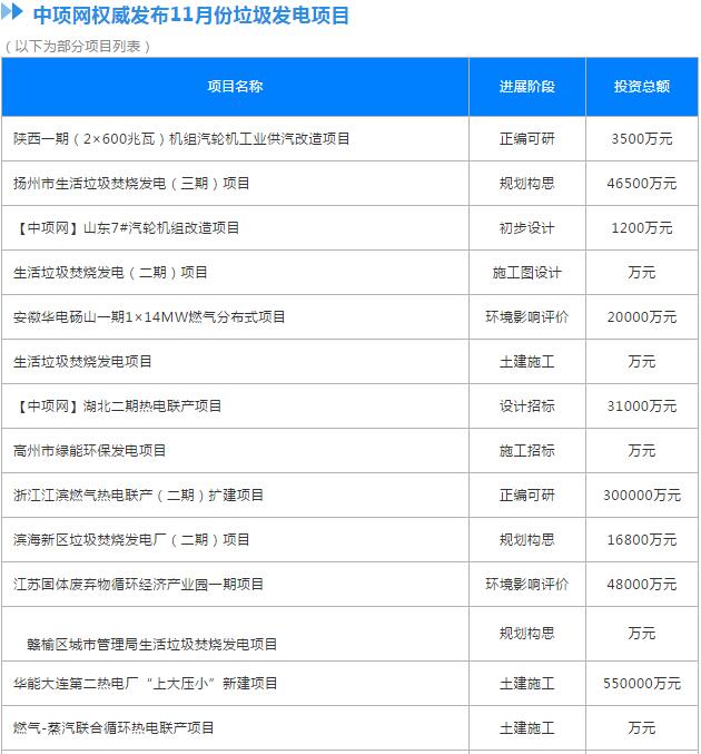 11月份全國擬在建垃圾發(fā)電項(xiàng)目1 華能國際電力開發(fā)公司銅川照金電廠一期(2×600兆瓦)機(jī)組汽輪機(jī)工業(yè)供汽改造項(xiàng)目預(yù)算總投資額:3500萬元進(jìn)展階段:正編可研項(xiàng)目所在地:陜西省銅川市項(xiàng)目建設(shè)詳情:華能國際電力開發(fā)公司銅川照金電廠一期(2×600兆瓦)機(jī)組汽輪機(jī)工業(yè)供汽改造項(xiàng)目,1、項(xiàng)目建設(shè)地址:陜西...