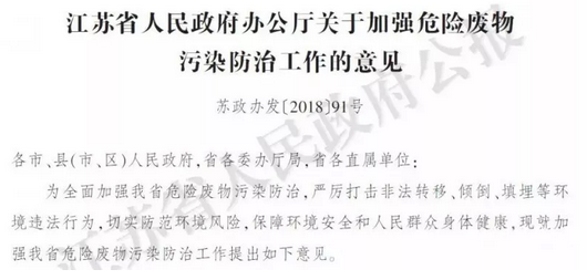 江蘇省人民政府辦公廳于近日發(fā)布了“關(guān)于加強(qiáng)危險(xiǎn)廢物污染防治工作的意見”,文件明確表示,對(duì)年產(chǎn)危險(xiǎn)廢物量500噸以上且當(dāng)年均未落實(shí)處置去向,以及累計(jì)貯存2000噸以上的化工企業(yè),督促企業(yè)限期整改,未按要求完成整改的,政府將依法依規(guī)予以處理;危險(xiǎn)廢物年產(chǎn)生量5000噸以上的企業(yè)必須自建利用處置設(shè)施。江蘇...