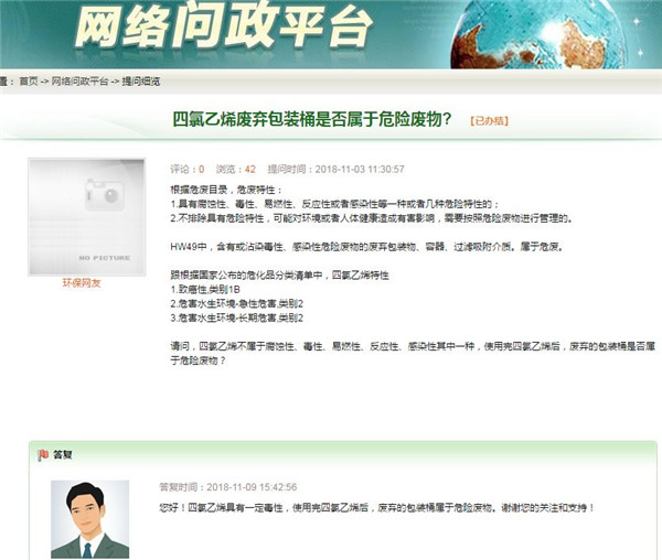 四氯乙烯廢棄包裝桶是否屬于危險廢物?根據(jù)危廢目錄,危廢特性:1.具有腐蝕性、毒性、易燃性、反應性或者感染性等一種或者幾種危險特性的;2.不排除具有危險特性,可能對環(huán)境或者人體健康造成有害影響,需要按照危險廢物進行管理的。HW49中,含有或沾染毒性、感染性危險廢物的廢棄包裝物、容器、過濾吸附介質(zhì)。屬于...