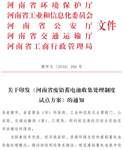 日前,河南省五部門聯(lián)合印發(fā)了《河南省廢鉛蓄電池收集處理制度試點方案》,《方案》提出,到 2018 年底,構(gòu)建廢鉛蓄電池集中收集、跨區(qū)域轉(zhuǎn)運方式和全過程溯源管理模式,年底總結(jié)試點地區(qū)經(jīng)驗,在全省范圍內(nèi)推行。到 2019 年底,試點企業(yè)落實廢鉛蓄電池規(guī)范化管理制度,建成廢鉛蓄電池逆向物流回收體系。到 2...