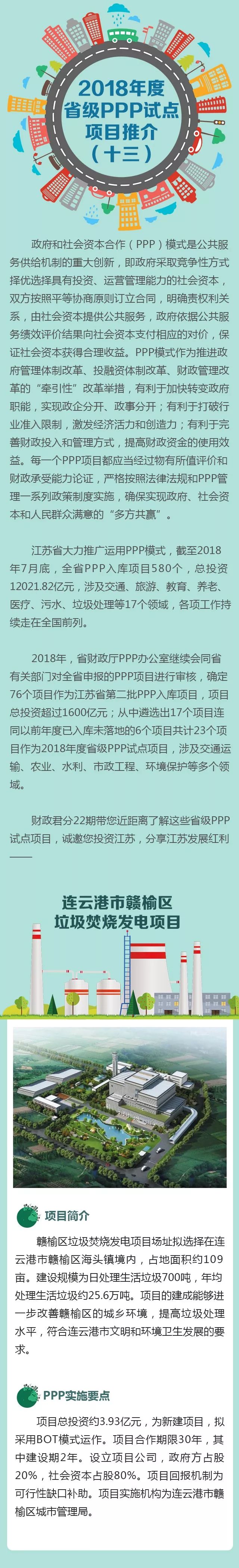 2018省級PPP試點項目推介之十三連云港市贛榆區(qū)垃圾焚燒發(fā)電項目2018省級PPP試點項目推介之十一新沂市生活垃圾焚燒發(fā)電項目原標題:2018江蘇省級PPP試點項目推介(垃圾焚燒專場)
