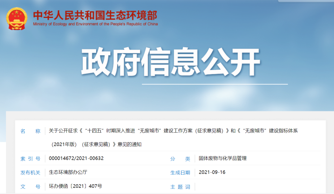 為深入打好污染防治攻堅(jiān)戰(zhàn),推動(dòng)形成綠色發(fā)展方式和生活方式,加強(qiáng)固體廢物系統(tǒng)治理,持續(xù)推進(jìn)固體廢物源頭減量和資源化利用,最大限度減少填埋量,有效防范生態(tài)環(huán)境風(fēng)險(xiǎn),指導(dǎo)地方做好“十四五”時(shí)期“無廢城市”建設(shè)工作,我部會(huì)同相關(guān)部門組織編制了《“十四五”時(shí)期深入推進(jìn)“無廢城市”建設(shè)工作方案(征求意見稿)》和...