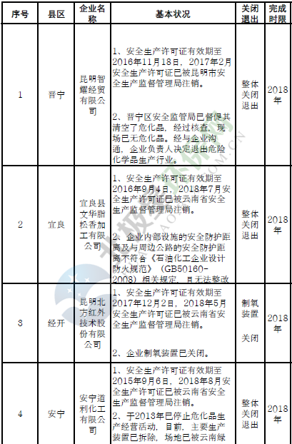 日前云南省應(yīng)急管理廳發(fā)布了印發(fā)危險(xiǎn)化學(xué)品安全工程三年行動計(jì)劃有關(guān)企業(yè)名單,明確關(guān)閉退出、就地改造、綜合整治的危險(xiǎn)化學(xué)品生產(chǎn)(儲存)企業(yè)名單。對91戶危險(xiǎn)化學(xué)品生產(chǎn)(儲存)企業(yè)和部分生產(chǎn)裝置,雖不在城鎮(zhèn)人口密集區(qū),但由于不符合產(chǎn)業(yè)政策、不具備基本安全生產(chǎn)條件且無法整改的,實(shí)施關(guān)閉退出。對37戶內(nèi)部安全...