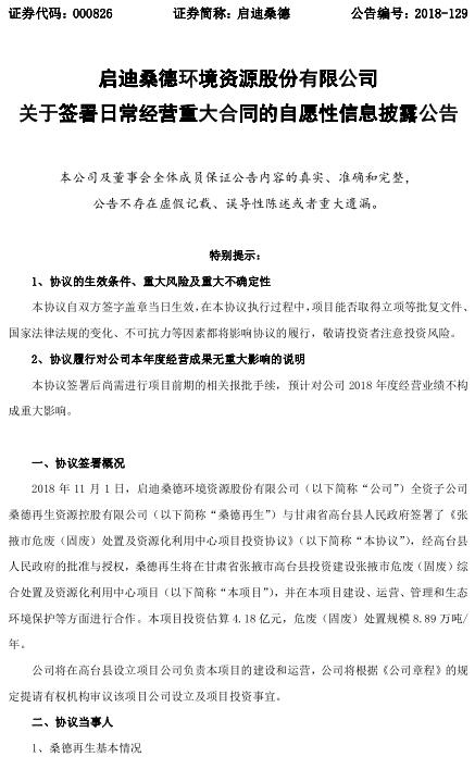 啟迪桑德日前公告,公司全資子公司桑德再生與甘肅省高臺縣人民政府簽署協(xié)議,桑德再生將在甘肅省張掖市高臺縣投資建設(shè)張掖市危廢(固廢)綜合處置及資源化利用中心項(xiàng)目,并在項(xiàng)目建設(shè)、運(yùn)營、管理和生態(tài)環(huán)境保護(hù)等方面進(jìn)行合作。該項(xiàng)目投資估算4.18億元,危廢(固廢)處置規(guī)模8.89萬噸/年。公告如下:延伸閱讀:青...