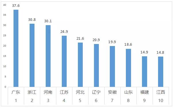 截止2018年9月30日,2018年度前九個月的全國新簽年費總額高達355億,比2017年全年總額高出37億。的高速增長,除了廣東、浙江、山東等傳統(tǒng)環(huán)衛(wèi)大省持續(xù)發(fā)力外,安徽、河南、河北、江西等新興環(huán)衛(wèi)大省的迅速崛起,更是蔚為壯觀……前十省份新簽項目年費占全國總額的66% 截止2018年9月30日,新...