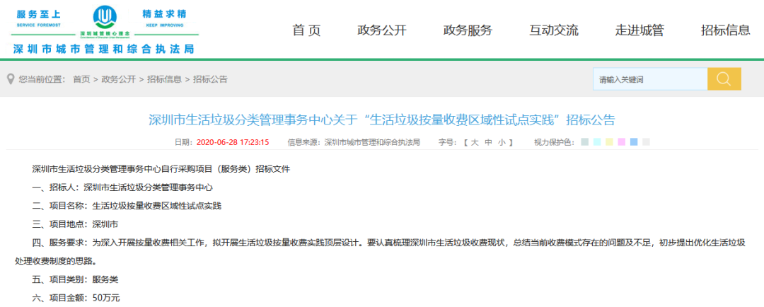文章導(dǎo)讀6月,深圳市啟動(dòng)“生活垃圾按量收費(fèi)區(qū)域性試點(diǎn)實(shí)踐項(xiàng)目”公開招標(biāo)。按計(jì)劃,中標(biāo)人將于12月10日提交項(xiàng)目成果。9月1日,有著里程碑式意義的《深圳市生活垃圾分類管理?xiàng)l例》開始實(shí)施,宣告深圳垃圾分類進(jìn)入法治強(qiáng)制時(shí)代?!稐l例》授權(quán)深圳市人民政府按照“誰產(chǎn)生誰付費(fèi)和差別化收費(fèi)”的原則,逐步建立計(jì)量收費(fèi)...