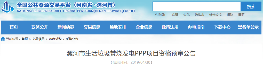 近日,河南漯河市2250噸/日生活垃圾焚燒PPP項目資格預審結果公示,經(jīng)評審小組評定,在遞交資格預審申請文件的8家申請人中,共有7家符合資格預審條件。名單如下(排名不分先后)山東省工業(yè)設備安裝集團有限公司北京高能時代環(huán)境技術股份有限公司河南城發(fā)環(huán)境股份有限公司中電建寧夏工程有限公司協(xié)鑫智慧能源股份有...