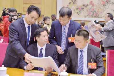 在湖北團(tuán)開放日活動(dòng)結(jié)束后,部分“村支書代表”在一起熱議政府工作報(bào)告。 記者戴軍攝3月6日,十三屆全國(guó)人大二次會(huì)議湖北代表團(tuán)舉行全體會(huì)議,傳達(dá)學(xué)習(xí)習(xí)近平總書記在參加內(nèi)蒙古代表團(tuán)審議時(shí)的重要講話精神,審議政府工作報(bào)告,并向中外媒體全程開放,99家媒體(其中境外媒體43家)的201名記者到會(huì)采訪。針對(duì)高質(zhì)...