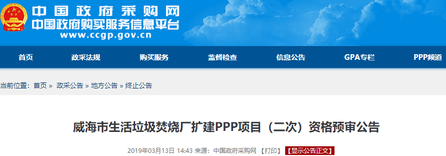 中國(guó)環(huán)聯(lián)網(wǎng)獲悉,3月13日,山東省威海市生活垃圾焚燒廠擴(kuò)建PPP項(xiàng)目發(fā)布二次資格預(yù)審公告。1、項(xiàng)目概況:1.1項(xiàng)目名稱:威海市生活垃圾焚燒廠擴(kuò)建PPP項(xiàng)目1.2項(xiàng)目編號(hào):SDGP3710002019020000221.3采購(gòu)人:威海市園林管理局2、采購(gòu)需求2.1本項(xiàng)目主要工程內(nèi)容為500噸/日處理量...