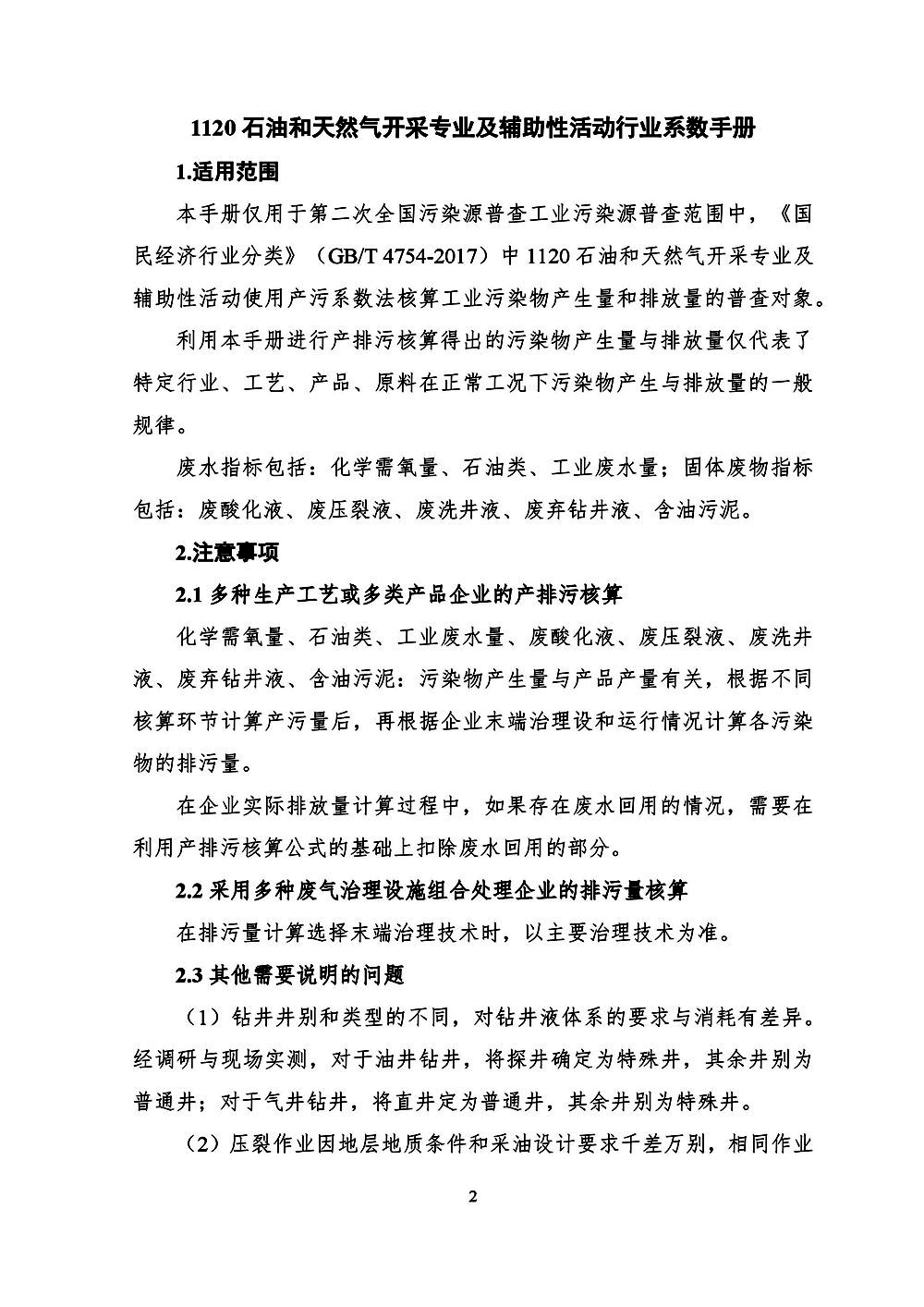 導讀:第二次全國污染源普查 石油和天然氣開采專業(yè)及輔助性活動行業(yè)系數(shù)手冊(初稿) 本手冊僅用于第二次全國污染源普查工業(yè)污染源普查范圍中,《國民經濟行業(yè)分類》(GB/T 4754-2017)中1120石油和天然氣開采專業(yè)及輔助性活動使用產污系數(shù)法核算工業(yè)污染物產生量和排放量的普查對象。利用本手冊進行產...