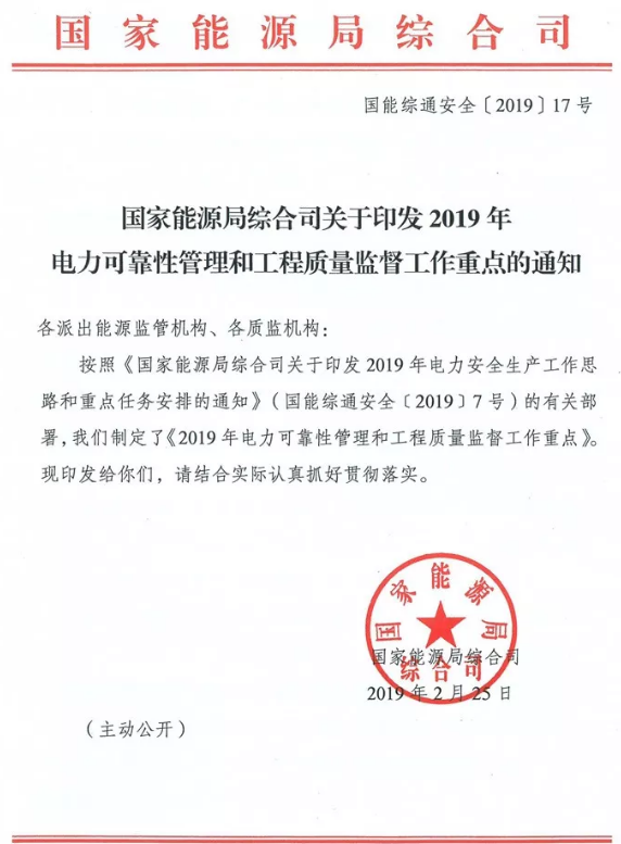 日前國家能源局綜合司印發(fā)了,《關于印發(fā)2019電力可靠性管理和工程質量監(jiān)督工作重點通知》,按照《國家能源局綜合司關于印發(fā)2019年電力安全生產工作思路和重點任務安排的通知》(國能綜通安全【2019】7號)的有關部署,國家能源局綜合司制定了《2019年電力可靠性管理和工程質量監(jiān)督工作重點》。文件提出,...