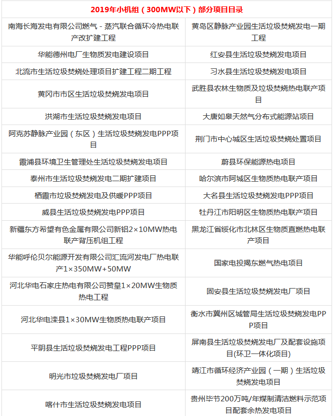 2019年小機組(300MW下)部分項目目錄:其中大部分為垃圾發(fā)電項目,涉及生物質發(fā)電建設項目、生活垃圾焚燒發(fā)電項目、生物質熱電聯(lián)產項目等,具體項目名單如下:原標題:2019年在建、擬建火力發(fā)電和垃圾發(fā)電項目名錄