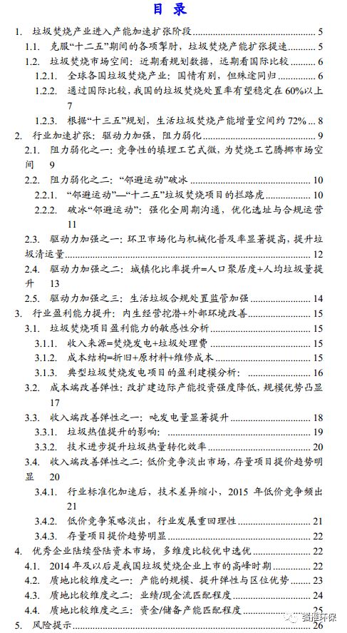 本文核心觀點(diǎn):歷時(shí)2個(gè)月,逐個(gè)梳理國(guó)內(nèi)投產(chǎn)、在建與中標(biāo)垃圾焚燒項(xiàng)目資料;單個(gè)項(xiàng)目生產(chǎn)經(jīng)營(yíng)數(shù)據(jù)出發(fā),盈利分析建模、重點(diǎn)參數(shù)敏感性分析、重點(diǎn)參數(shù)合理性討論。宏觀市場(chǎng)需求與國(guó)際平行比較。垃圾焚燒行業(yè),將迎來(lái)產(chǎn)能加速擴(kuò)張&項(xiàng)目經(jīng)營(yíng)效益邊際改善的價(jià)值雙擊。確定性的行業(yè)剛需:生活垃圾處置,是市政環(huán)保領(lǐng)域...