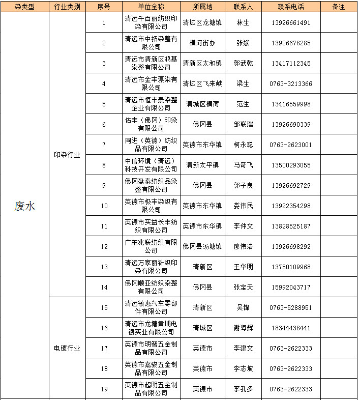 廣東省清遠市發(fā)布清遠市2019年重點排污單位。共有重點排污單位82家,涉及廢水、廢氣、有色金屬等。詳情如下: