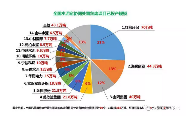 近年來,水泥窯協(xié)同處置危廢發(fā)展迅速,經(jīng)濟及社會環(huán)境效益均非常顯著。截至到2018年,我國已取得危廢經(jīng)營許可證的水泥窯協(xié)同處置危廢項目60個,處置規(guī)模約368萬噸/年。其中,剔除8個資質(zhì)僅包含HW33的項目后,綜合類危廢處置項目合計52個,處置規(guī)模約284萬噸/年。我國焚燒類危險廢物處置合計產(chǎn)能634...