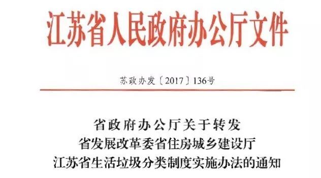 文章導(dǎo)讀 經(jīng)過一個(gè)半月征求意見,江蘇省近日正式發(fā)布《江蘇省生活垃圾分類制度實(shí)施辦法》。明確主要目標(biāo):到2020年,根據(jù)國家和省垃圾分類相關(guān)法律法規(guī)和標(biāo)準(zhǔn)體系,形成可復(fù)制、可推廣的生活垃圾分類模式;設(shè)區(qū)市城市建成區(qū)生活垃圾分類投放設(shè)施覆蓋率達(dá)到70%以上,其他城市建成區(qū)達(dá)到60%以上;在實(shí)施生活垃圾強(qiáng)...