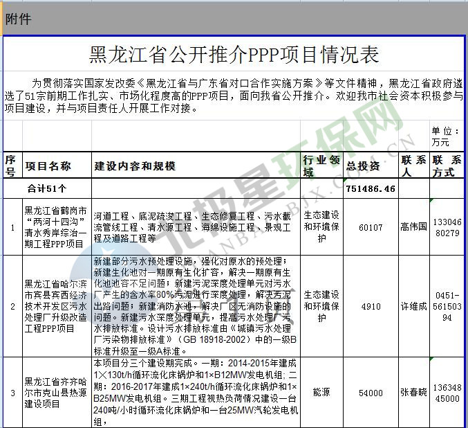 日前,黑龍江省政府遴選了51宗前期工作扎實(shí)、市場(chǎng)化程度高的PPP項(xiàng)目,面向廣東省公開(kāi)推介。其中涉及環(huán)保項(xiàng)目23個(gè)。詳情如下:黑龍江省公開(kāi)推介PPP項(xiàng)目情況表為貫徹落實(shí)國(guó)家發(fā)改委《黑龍江省與廣東省對(duì)口合作實(shí)施方案》等文件精神,黑龍江省政府遴選了51宗前期工作扎實(shí)、市場(chǎng)化程度高的PPP項(xiàng)目,面向我省公開(kāi)...