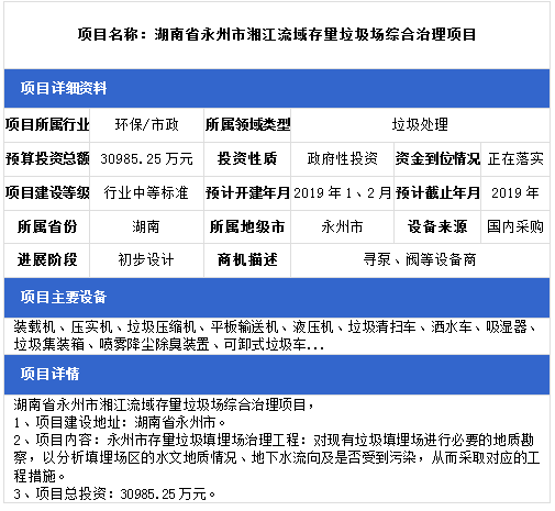 中項(xiàng)網(wǎng)獨(dú)家授權(quán)北極星固廢網(wǎng)發(fā)布最新垃圾處理項(xiàng)目(2018年12月18日更新),其中包括生活垃圾無(wú)害化處理設(shè)置建設(shè)項(xiàng)目、農(nóng)村生活垃圾治理項(xiàng)目、生活垃圾衛(wèi)生填埋場(chǎng)項(xiàng)目等。具體內(nèi)容如下: