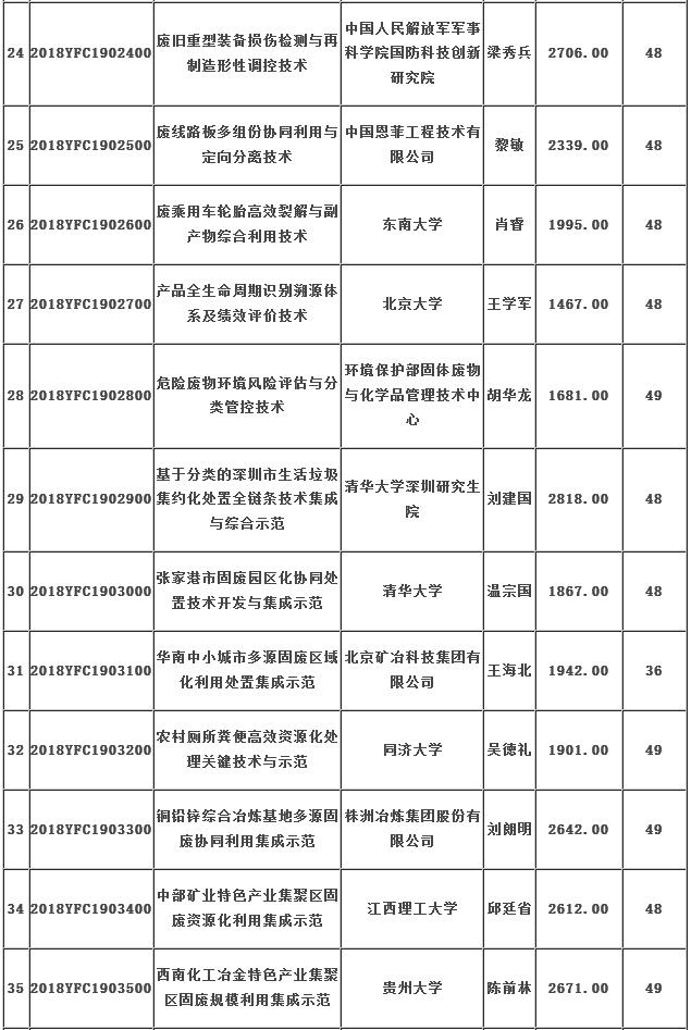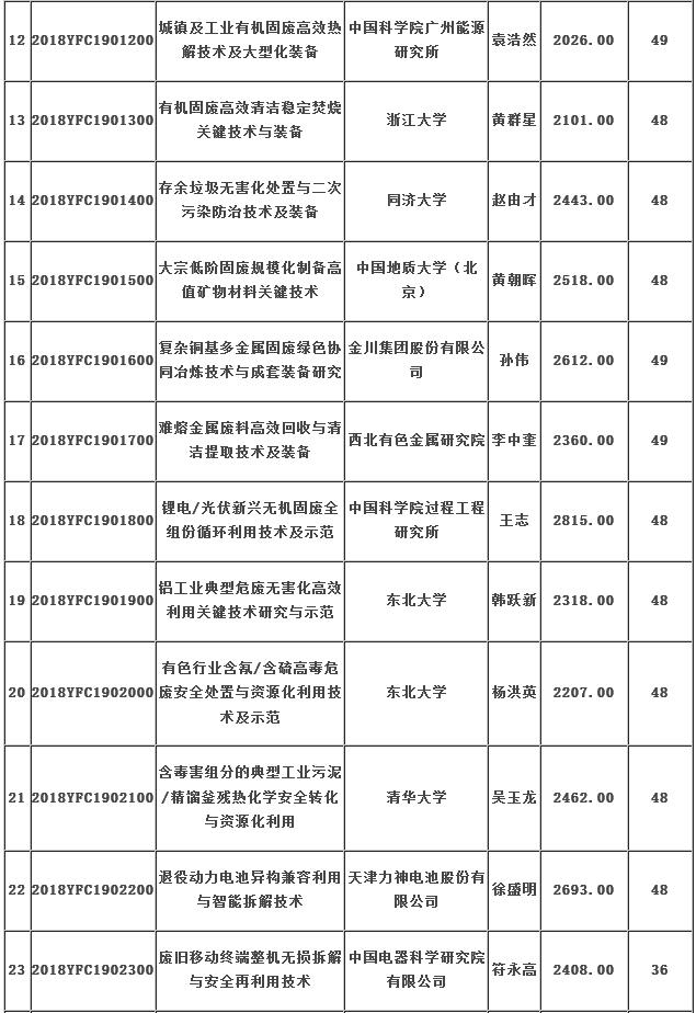 國(guó)家重點(diǎn)研發(fā)計(jì)劃“固廢資源化”重點(diǎn)專(zhuān)項(xiàng)2018年度項(xiàng)目安排公示清單