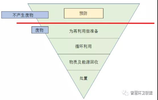 金字塔中的預防指:在設(shè)計和制造產(chǎn)品的過程中,盡量減少原料的使用量;延長產(chǎn)品的使用壽命;減少有害物質(zhì)的使用量。為再利用做準備指:對產(chǎn)品的整體或部件進行檢查、清理、修理、翻新等工作。循環(huán)利用指:使用廢物生產(chǎn)新的物質(zhì)或產(chǎn)品,包括堆肥。其他回收手段指:使用厭氧消化、焚燒發(fā)電、氣化等手段產(chǎn)生能量(包括燃料、熱、電)和一些物料(可以用作回填物)。處置指:填埋和沒有能量回收手段的焚燒。
