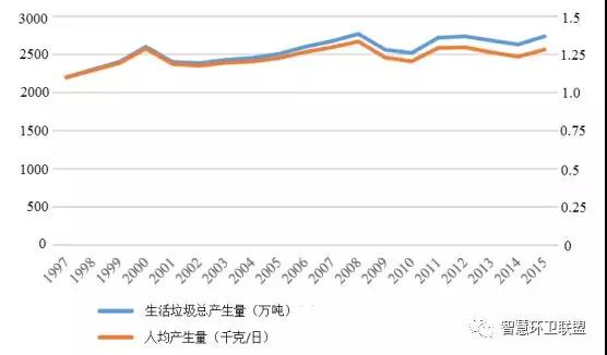 圖2. 芬蘭生活垃圾產(chǎn)生量及人均產(chǎn)生量的變化趨勢
