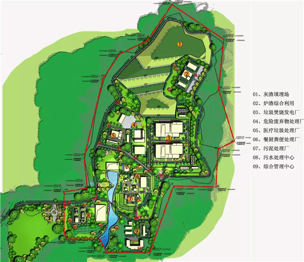 園區(qū)總投資17.16億元,總規(guī)劃占地面積為1225畝,園區(qū)規(guī)劃建設(shè)有6個(gè)廠區(qū),包括:日處理量2000噸的生活垃圾焚燒發(fā)電廠(其中包括園區(qū)路網(wǎng)、飛灰填埋場、爐渣綜合利用廠、綜合污水處理廠等配套設(shè)施),日處理量為200噸的餐廚垃圾處理廠,日處理量為200噸的污泥處理廠,醫(yī)療垃圾處理廠,危險(xiǎn)廢棄物處理廠和糞便處理廠。