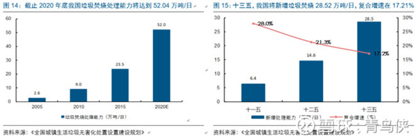十三五是垃圾焚燒方式對填埋等方式替代的過程,從產能復合增速角度,十三五年均復合增速仍有17.2%,雖低于十二五的21.3%,但仍可稱作成長行業(yè)。