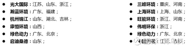 截止2018H1,目前主流焚燒企業(yè)的產能分布圖情況: