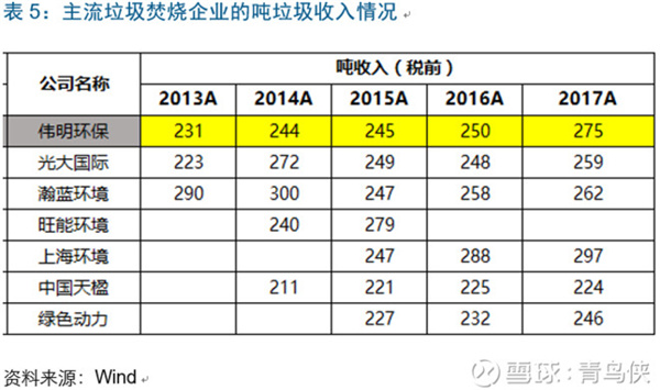 偉明環(huán)保的綜合垃圾處置單價約77.5元/噸,排在行業(yè)中等,最高的是上海環(huán)境,高達104元/噸