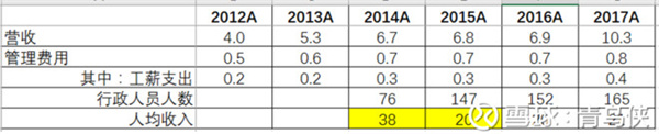 公司管理費用里最大的是工薪支出,通過計算人均薪酬(工薪支出/行政人員人數(shù))發(fā)現(xiàn)公司的行政人員薪酬在2015年下滑明顯,對此存在一定疑惑;