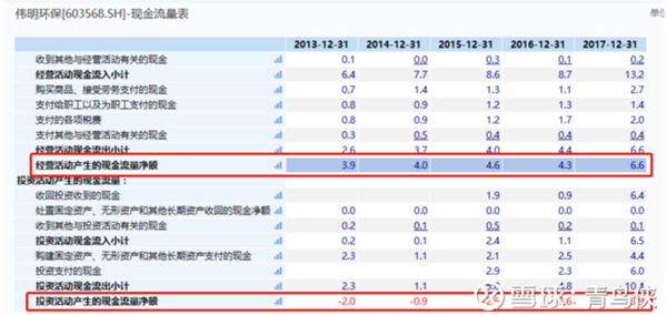 偉明環(huán)保經營活動現(xiàn)金流凈額持續(xù)為正,且超過投資活動現(xiàn)金流凈額,期末現(xiàn)金余額持續(xù)增加,可見其期末現(xiàn)金余額主要來之經營;