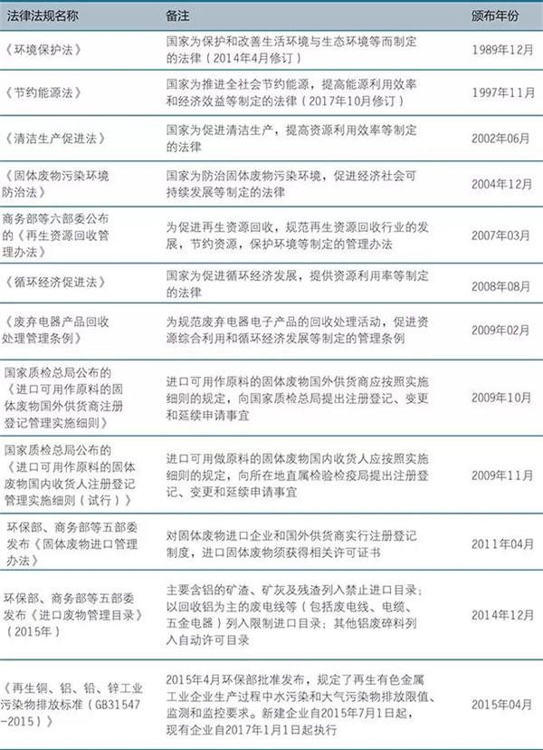 再生鋁行業(yè)屬于資源再生和循環(huán)經(jīng)濟(jì)的范疇,行業(yè)的良好發(fā)展具有重大的經(jīng) 濟(jì)、社會和環(huán)境意義,是國家大力發(fā)展的行業(yè)之一。近幾年來,我國相繼出臺了大力鼓勵(lì)和支持循環(huán)經(jīng)濟(jì)、再生金屬行業(yè)發(fā)展的眾多政策性文件。