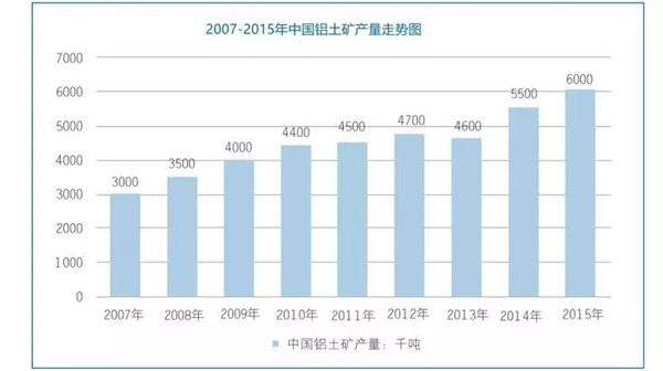 2015年中國鋁土礦產(chǎn)量為6000萬噸,占同期全球總產(chǎn)量的21.9%。按照同期中國鋁土礦資源儲量,中國鋁土礦靜態(tài)可采年限僅為14年,遠(yuǎn)低于全球120年的平均水平,加強(qiáng)資源的合理開發(fā)利用是我國鋁土礦產(chǎn)業(yè)乃至整個(gè)鋁業(yè)所面臨的重要問題。