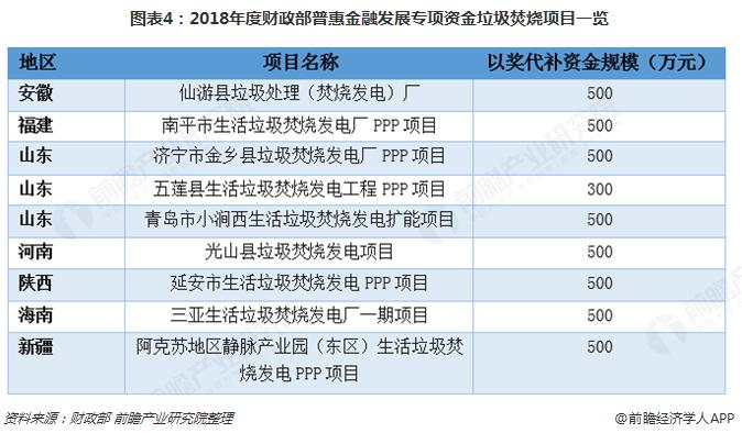 2018年10月12日,財政部發(fā)布《關(guān)于下達2018年度普惠金融發(fā)展專項資金預(yù)算的通知》,并隨文公布了獲得PPP項目以獎代補資金項目名單,其中新建項目383個,存量項目11個。涉及大批流域綜合治理、污水處理廠、生活垃圾焚燒發(fā)電,環(huán)衛(wèi)等環(huán)保領(lǐng)域項目。其中涉及生活垃圾處理的項目有20個,包含9個垃圾焚燒項目。