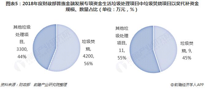 針對目前中國垃圾焚燒處理比例偏低的情況,財政部通過以獎代補的方式積極推動垃圾焚燒處理項目的發(fā)展,在《關(guān)于下達2018年度普惠金融發(fā)展專項資金預(yù)算的通知》涉及的20個生活垃圾處理的項目中,垃圾焚燒項目達到了9個。以獎代補的資金規(guī)模占到全部生活垃圾處理項目的56%。垃圾焚燒項目所涉及地區(qū)即包含東部沿海經(jīng)濟發(fā)達省份,又有西北、中部等內(nèi)陸省份。