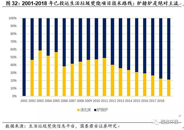 爐排爐較流化床技術(shù)噸上網(wǎng)電量高,而爐排爐技術(shù)在我國已成為絕對主流。