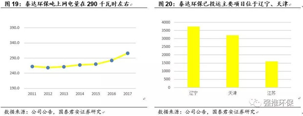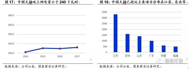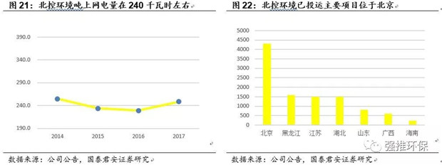 京津冀:泰達(dá)環(huán)保運(yùn)營項(xiàng)目主要位于天津、大連等地,2017年噸上網(wǎng)電量300千瓦時(shí)以上。北控環(huán)境運(yùn)營項(xiàng)目主要位于北京和全國其他區(qū)域,噸上網(wǎng)電量接近250千瓦時(shí)。