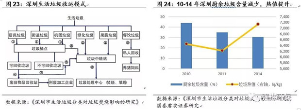 ①垃圾分類收集推進(jìn):剩余垃圾的水分含量會隨著生物質(zhì)垃圾分類率的提高而降低,以深圳為例,隨著生活垃圾分類的推進(jìn),廚余垃圾逐年減少,2014年深圳入垃圾焚燒廠的垃圾中餐廚含量降低至30.7%,相比2010年降低了13.4%;低位熱值提高到7144kJ/kg,提升了約14.7%。