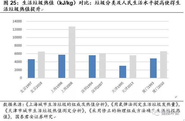 ②人民生活水平提高使得生活垃圾熱值自然提升:在中國,垃圾中不可燃物逐年降低和可燃物的逐年上升,熱值在過去十幾年間有較快的增長。隨著經(jīng)濟(jì)發(fā)展和人民生活水平提高,生活垃圾熱值有提升趨勢。