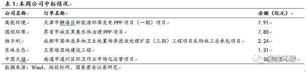 根據(jù)公告與招投標(biāo)信息統(tǒng)計(jì),本周環(huán)保公司中新增訂單5單、中標(biāo)總金額19.26億;新增訂單前三名分別為高能環(huán)境、國禎環(huán)保和維爾利。