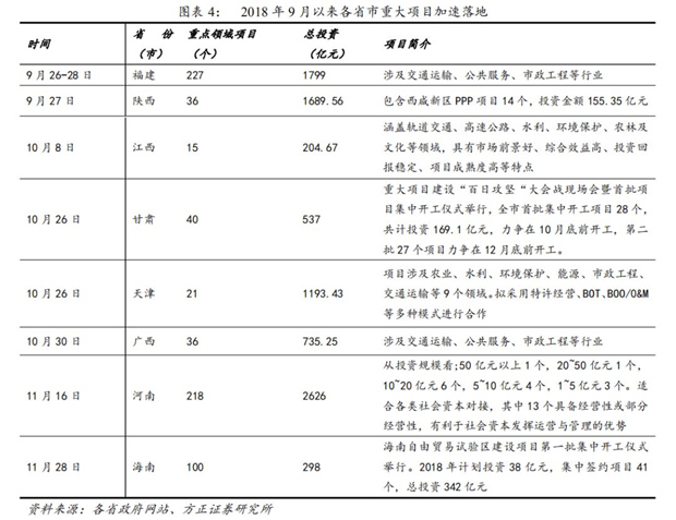 2018年年中以來,基建補(bǔ)短板政策不斷加碼。2018年7月,政治局會(huì)議、國常會(huì)分別作出要求加強(qiáng)“基建領(lǐng)域補(bǔ)短板”,此后基建補(bǔ)短板政策不斷加碼,各省市重大項(xiàng)目加速落地。