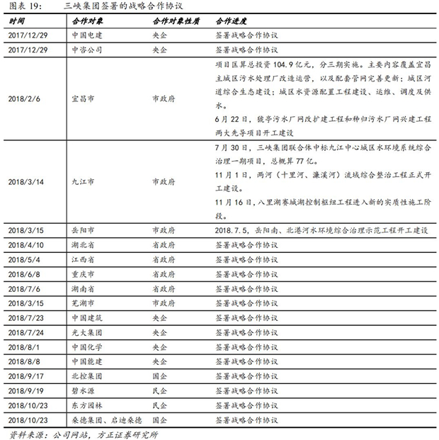 2018年初至今,三峽集團(tuán)已與6家央企簽署共抓長(zhǎng)江大保護(hù)戰(zhàn)略合作框架協(xié)議,與四家國企、民企簽署戰(zhàn)略合作協(xié)議,與長(zhǎng)江沿線8省市簽訂戰(zhàn)略框架協(xié)議。