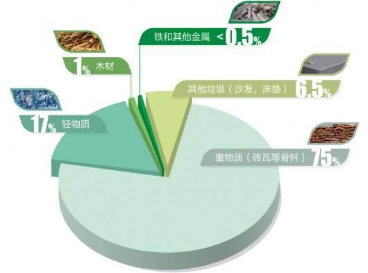 “這種分揀精確度較高,可以解決以往塑料等輕物質(zhì)和磚瓦等重物質(zhì)分揀不清的問題。”上海勤順建設(shè)工程有限公司副總經(jīng)理逯光輝表示,重物質(zhì)和輕物質(zhì)是裝修垃圾里的主要部分,按照重量來計算,分別占到裝修垃圾總量的75%和17%。然而現(xiàn)實中,這兩種物質(zhì)往往“難舍難分”,一直是分揀的難題。如果裝修垃圾分揀不清就進入末端處置環(huán)節(jié),比如難以降解的塑料垃圾直接填埋,將會對環(huán)境造成影響。