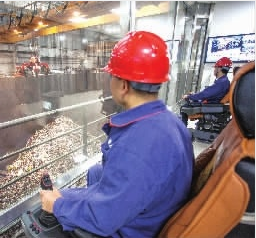 驅(qū)車沿黑麋峰蜿蜒的山路行駛,一路逶迤起伏,蒼翠欲滴。幾經(jīng)曲折面前豁然開(kāi)朗,腳下,青草、野花、樹(shù)木,彌漫著暗香浮動(dòng)的清新空氣;不遠(yuǎn)處,冷卻塔、煙囪、垃圾儲(chǔ)坑、焚燒發(fā)電廠房等涂裝不同顏色的建筑鱗次櫛比。無(wú)法想象,這竟是垃圾焚燒發(fā)電廠!沿著一號(hào)廠房的參觀通道,每走一段就有不同顏色的燈帶,預(yù)示著進(jìn)入了不同的處理車間。透過(guò)清潔焚燒中心垃圾吊控制室的玻璃幕墻,一個(gè)巨大的抓斗從垃圾池內(nèi)緩慢地將垃圾抓起,把它們從燃燒到千度高溫的焚燒爐頂端投進(jìn)去,焚燒爐內(nèi)的高溫迅速將垃圾烤干焚燒?!坝辛死贌l(fā)電,長(zhǎng)沙的生活垃圾最終會(huì)告別填埋!”浦湘公司副總經(jīng)理段佳指著正在大口大口“吞食”垃圾的現(xiàn)代化焚燒設(shè)備,臉上洋溢著自豪的微笑。